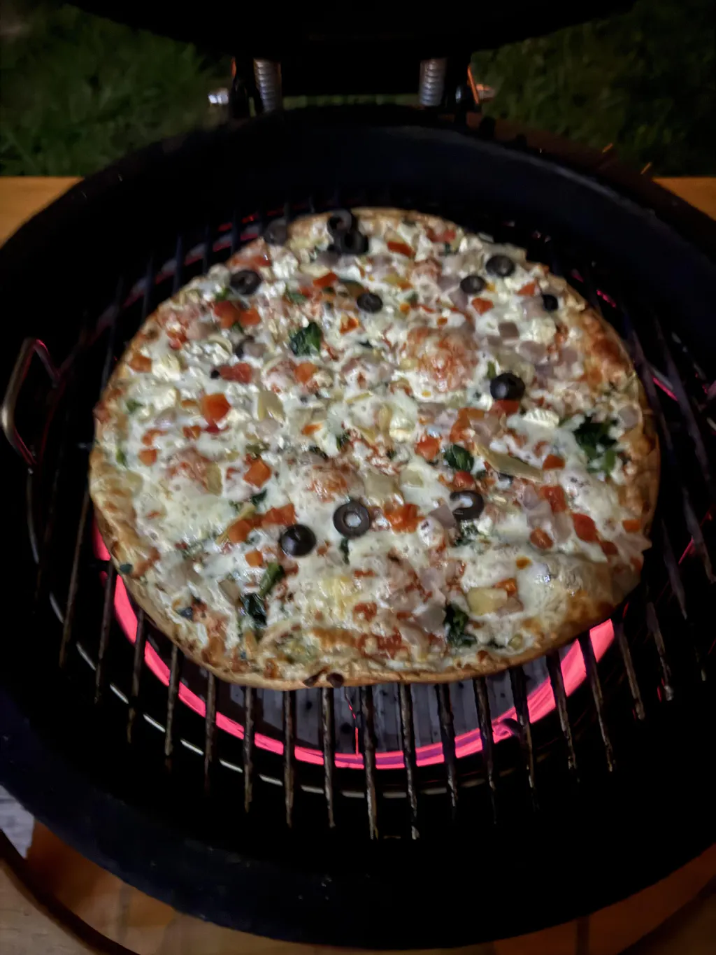 The top ring raises the cooking grid near the top of the base. This brings your food closer to opening (felt line) for better convection and extended grilling area.